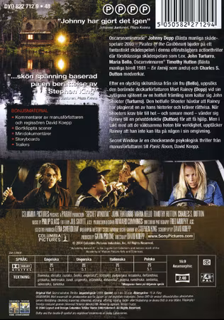 | Oscarnominerade Johnny Depp (Bästa manliga skådespelare 2003 – Pirates of the Caribbean) bjuder på ett fantastiskt skådespeleri i denna oförutsägbara actionthriller där förstklassiga skådespelare som t.ex. John Turturro, Maria Bello, Oscarvinnaren Timothy hutton (Bästa manliga biroll 1981 – En familj som andra) och Charles S. Dutton medverkar. Efter en olycklig skilsmässa från sin fru (Bello), uppsöks den berömde deckarförfattaren Mort Rainey (Depp) vid sin avlägsna sjötomt av en hotfull främling som kallar sig John Shooter (Turturro). Den hotfulle Shooter hävdar att Rainey har plagierat en av hans historier och kräver rättvisa. När Shooters krav blir till hot – och senare mord – vänder sig Rainey till en privatdetektiv (Dutton) för att få hjälp. Men i takt med att de våldsamma hoten blir verklighet, upptäcker Rainey att han inte kan lita på någon i sin omgivning. ”Secret Window” är en chockerande psykologisk thriller från manusförfattaren till "Panic Room”, David Koepp. | |